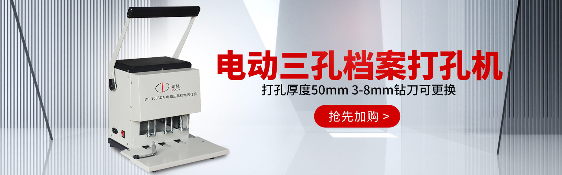 三孔檔案打孔裝訂機(jī)分為手動(dòng)和電動(dòng),一次可打三孔,型號(hào)多樣,裝訂形式為將打過(guò)孔的文件棉線裝訂、檔案盒裝訂、檔案夾裝訂等,標(biāo)準(zhǔn)83mm孔距,滿足政府機(jī)關(guān)單位檔案文件裝訂標(biāo)準(zhǔn)。